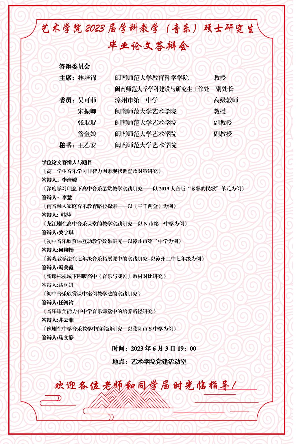 金年会jinnianhuicom2023届学科教学(音乐)硕士研究生毕业论文答辩会