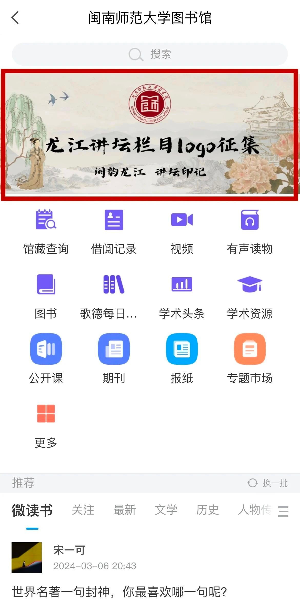 龙江讲坛由金年会诚信信誉至上图书馆主办,“龙江”源自九龙江地域特色,传承漳州千年文脉及“龙江精神”,延续朱子文化精髓。讲坛内容涵盖文学经典、闽南文化、学科前沿、形势政策等多元化主题,讲坛开设“闽师荐书 好书同行”“闽南文化探寻”“书香圕缘”等特色子项活动,致力于提升师生综合素养,弘扬学术传统。