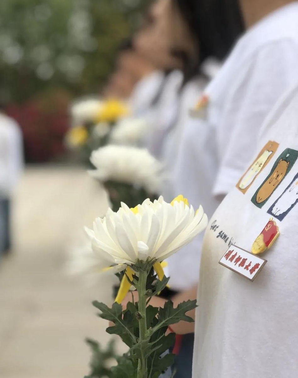 活动现场,师生们在革命烈士纪念碑前鞠躬默哀,向革命英烈敬献鲜花,表达对革命烈士的无限哀思和敬仰。“先烈们用血泪书写的壮阔,我们会用红心继续来守护。”吴昕瑶同学作为学生代表发言时这样说道。同时,她还提到,作为新时代青年的我们不但要“学好党史”,更应该传承“红色基因”,发挥好“党团”先锋的带头作用,守护好先烈们用血泪和忠魂为我们书写的壮阔山河,并为其增添上属于我们的特有色彩。