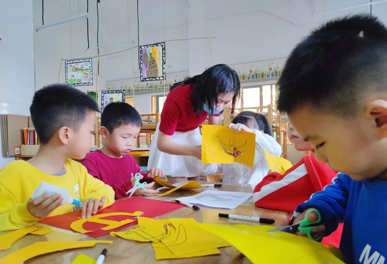 为引导小朋友从小听党话、感党恩、跟党走,厚植爱党、爱国、爱社会主义情怀,进一步弘扬和践行新时期雷锋精神,培育社会主义核心价值观,充分展现党员风采,在建党百年之际,2021年4月29日下午,金年会jinnianhuicom青年志愿者中心组织党员志愿者前往南坑中心幼儿园开展以手工剪纸、唱红歌和识乐器为主要内容的红色公益课堂活动。