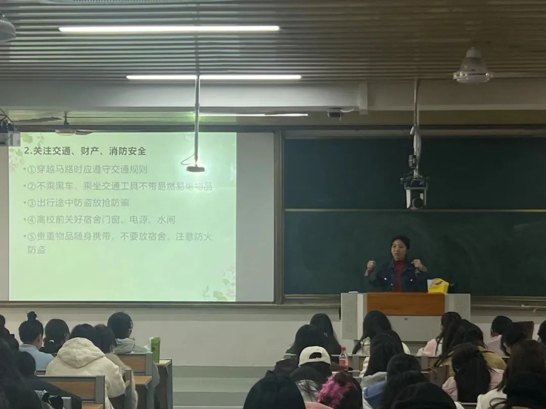 为了增强学生安全意识,让学生了解更多的安全知识,辅导员老师围绕元旦假期和期末寒假安全教育,向同学们介绍校园安全、网络安全、消防安全、交通安全、用电安全以及人身安全,向同学强调了节假日出行的注意事项,号召同学不到危险地方游玩,严格遵守请假制度,及时报备外出行程,要自觉抵制黄、赌、毒,在防范电信诈骗的同时也要增强心理调适能力。