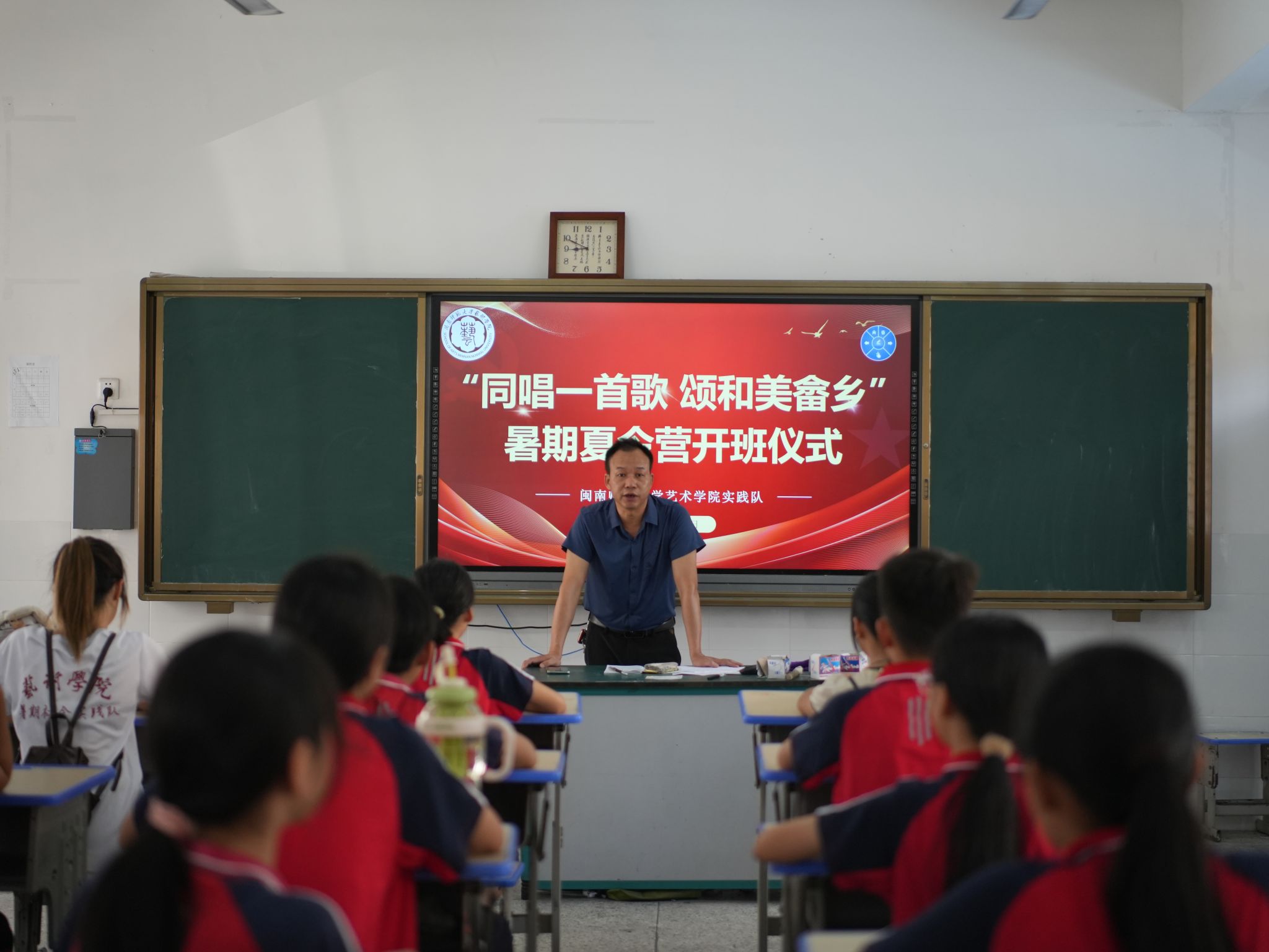 湖西乡民族中心学校副书记蓝福基对金年会jinnianhuicom开展暑期“三下乡”社会实践夏令营表示感谢,并对社会实践队员的到来表示欢迎。他介绍了本次夏令营的背景和活动目标,表示夏令营将推进湖西乡当地小学生的审美和人文素养的提升,也希望所有参加夏令营的同学认真听课,积极参与,勇敢追求艺术梦想。