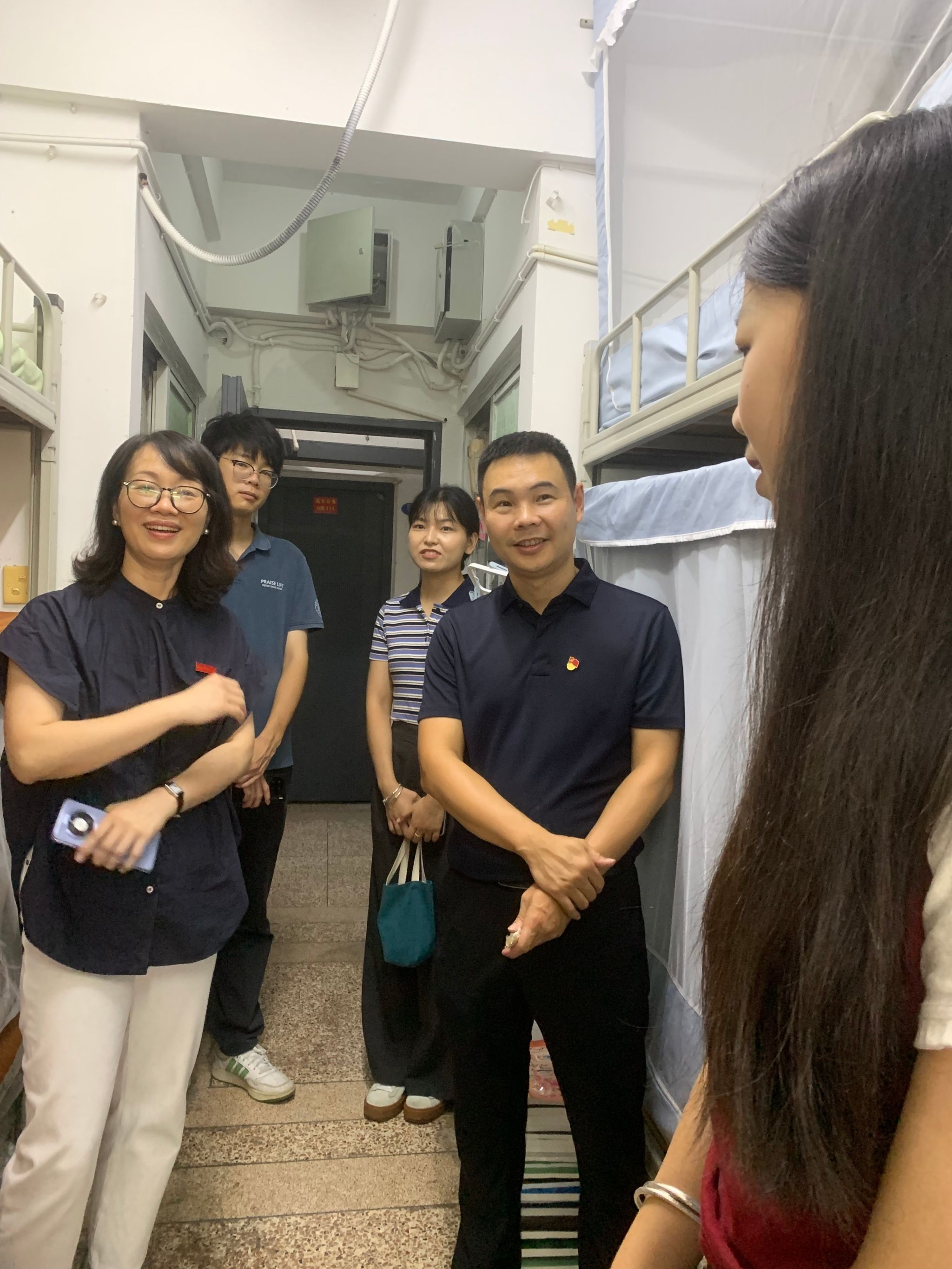 为进一步落实立德树人根本任务,全面了解金年会2024级新生入学适应情况,帮助新生们更好更快地融入新集体与新环境、及时解决学生遇到的问题,2024年9月8日下午,金年会jinnianhuicom党政领导班子、新生辅导员走进新生宿舍,与同学们“拉家常、聊近况、话学业”,送上来自金年会jinnianhuicom的第一份温暖和关怀。