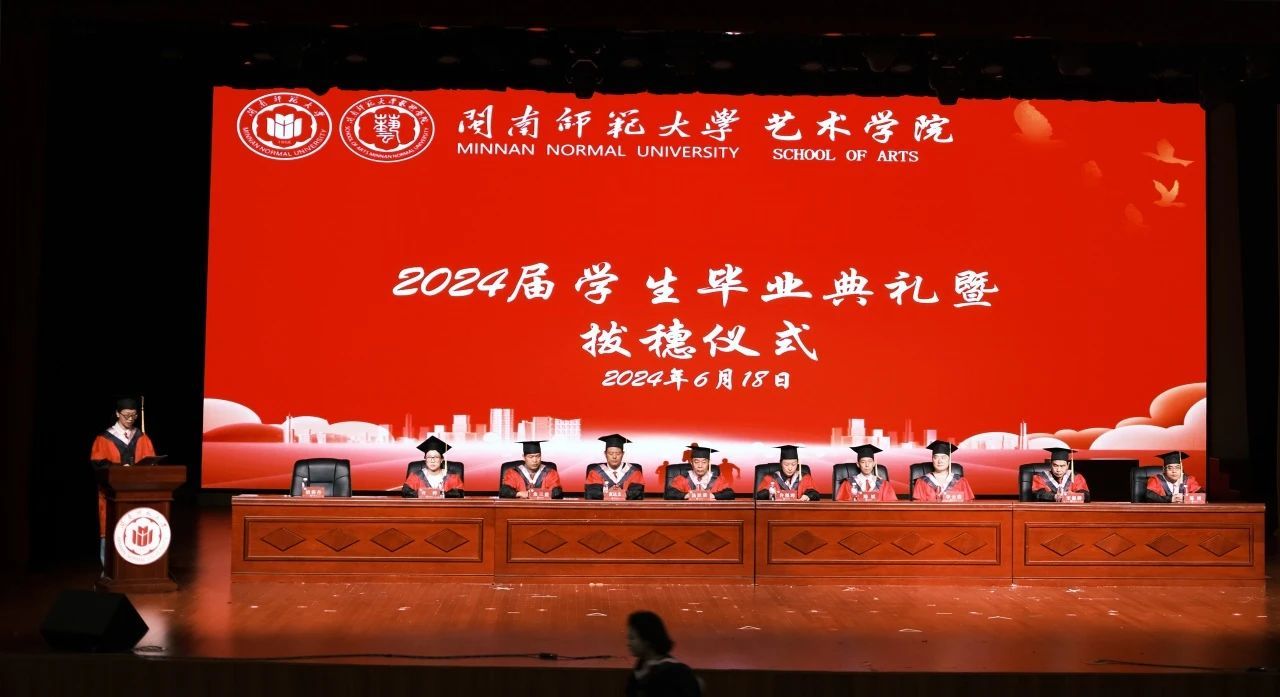 2024年6月18日上午,金年会jinnianhuicom2024届学生毕业典礼暨学位授予仪式在嘹亮的国歌声中正式开始。本次典礼于闽南文化艺术中心多功能厅举行,学院党委书记汤跃滨、主持工作副院长许佩晖、副院长蓝达文、院长助理、系主任、学术评定委员会委员、全体政工干部等出席毕业典礼,典礼由学院党委副书记胡莉丹老师主持。