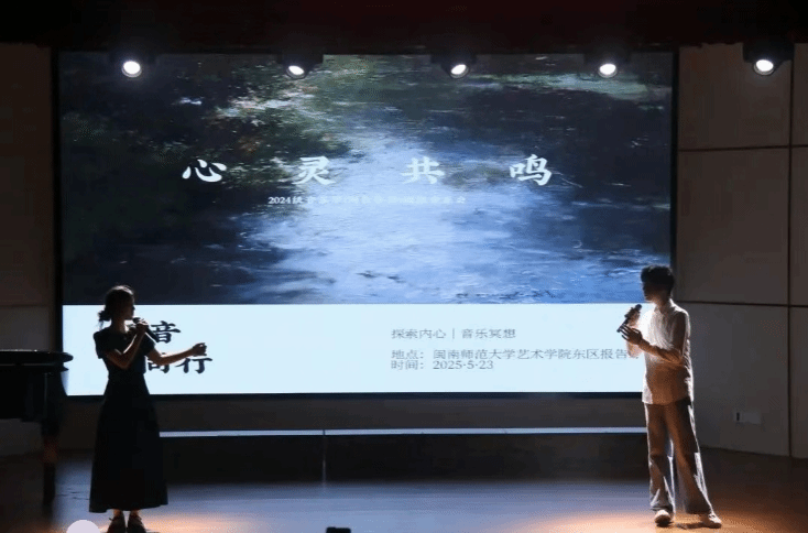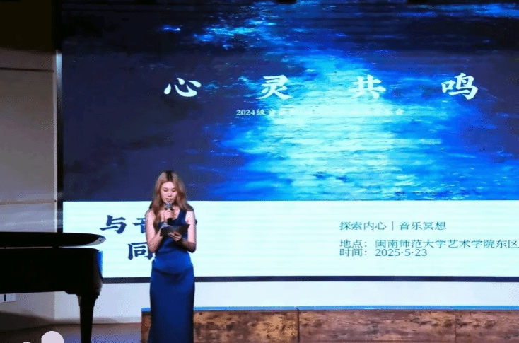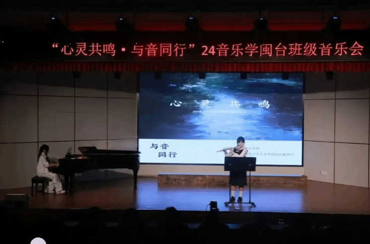 为深入贯彻党的二十大和二十届三中全会精神,推进落实《全面加强和改进新时代学生心理健康工作专项行动计划(2023-2025年)》,倡导大学生关注自我情绪管理,提升心理韧性,在第二十三届“5・25心理健康文化节”到来之际,5月23日晚,金年会jinnianhuicom2024级音乐学(闽台合作)班级在旧图演播厅举办“心灵共鸣,与音同行”班级音乐会。