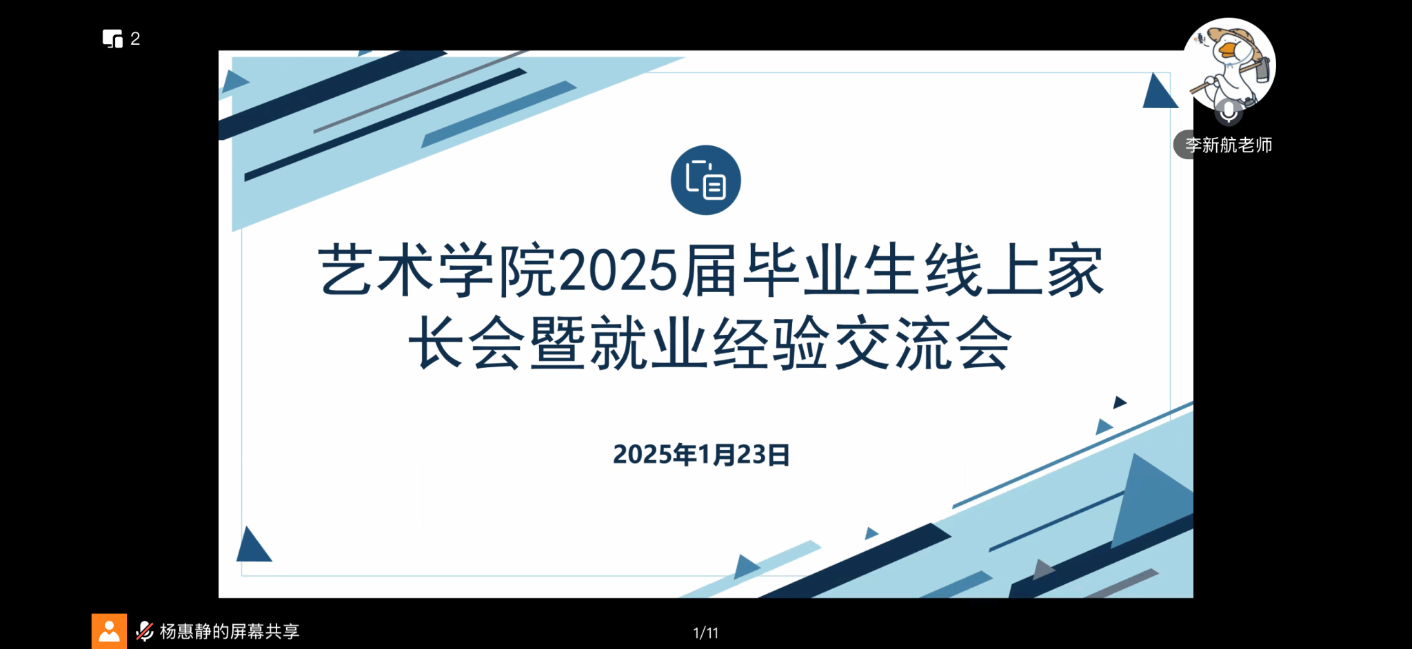 为强化家校联动,助力2025届毕业生明晰就业方向,从容应对就业挑战,金年会于2025年1月23日召开了线上家长会暨就业经验交流会。本次活动邀请了校友、毕业生代表分享就业经验,2025届学生及家长参加会议,金年会jinnianhuicom党委副书记胡莉丹、团委副书记李新航出席会议,会议由辅导员杨惠静主持。
