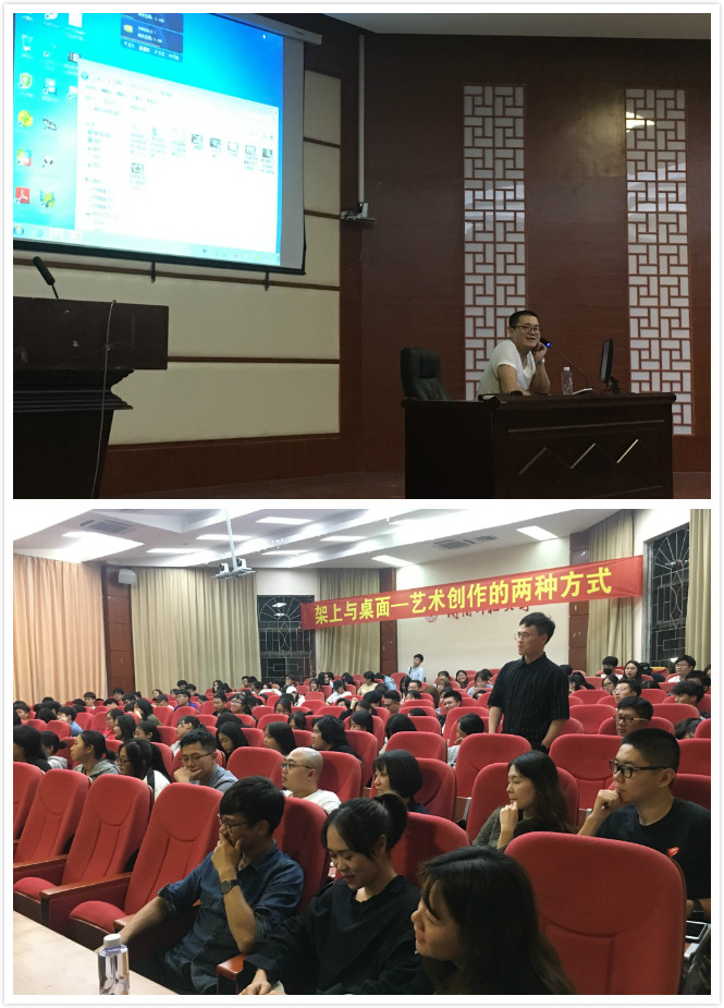 11月16日,著名艺术家张哲溢应邀作为主讲人在我校东区报告厅开展《架上与桌面艺术创作的两种方式》讲座。