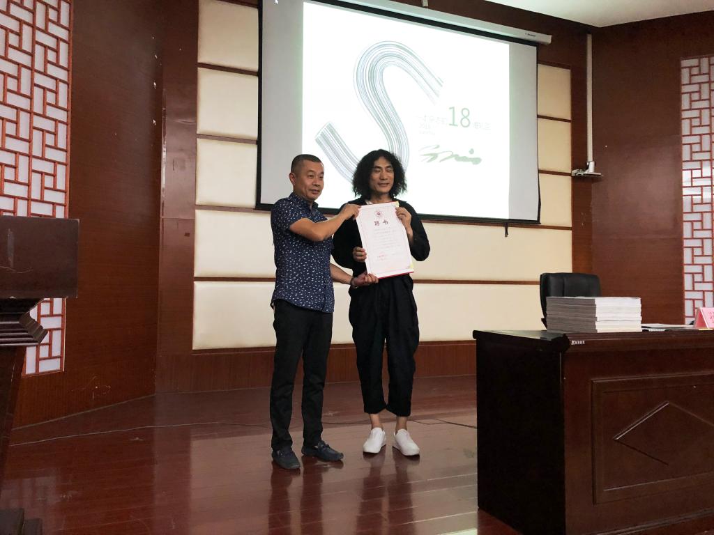 12月4日,知名艺术家孙初应邀在我校东区报告厅为金年会jinnianhuicom师生做了题为“杂志的18道轮回”的主题讲座。讲座开始前,金年会jinnianhuicom党委书记汤跃滨向孙初颁发了金年会诚信信誉至上聘任其为金年会jinnianhuicom客座教授的聘书。
