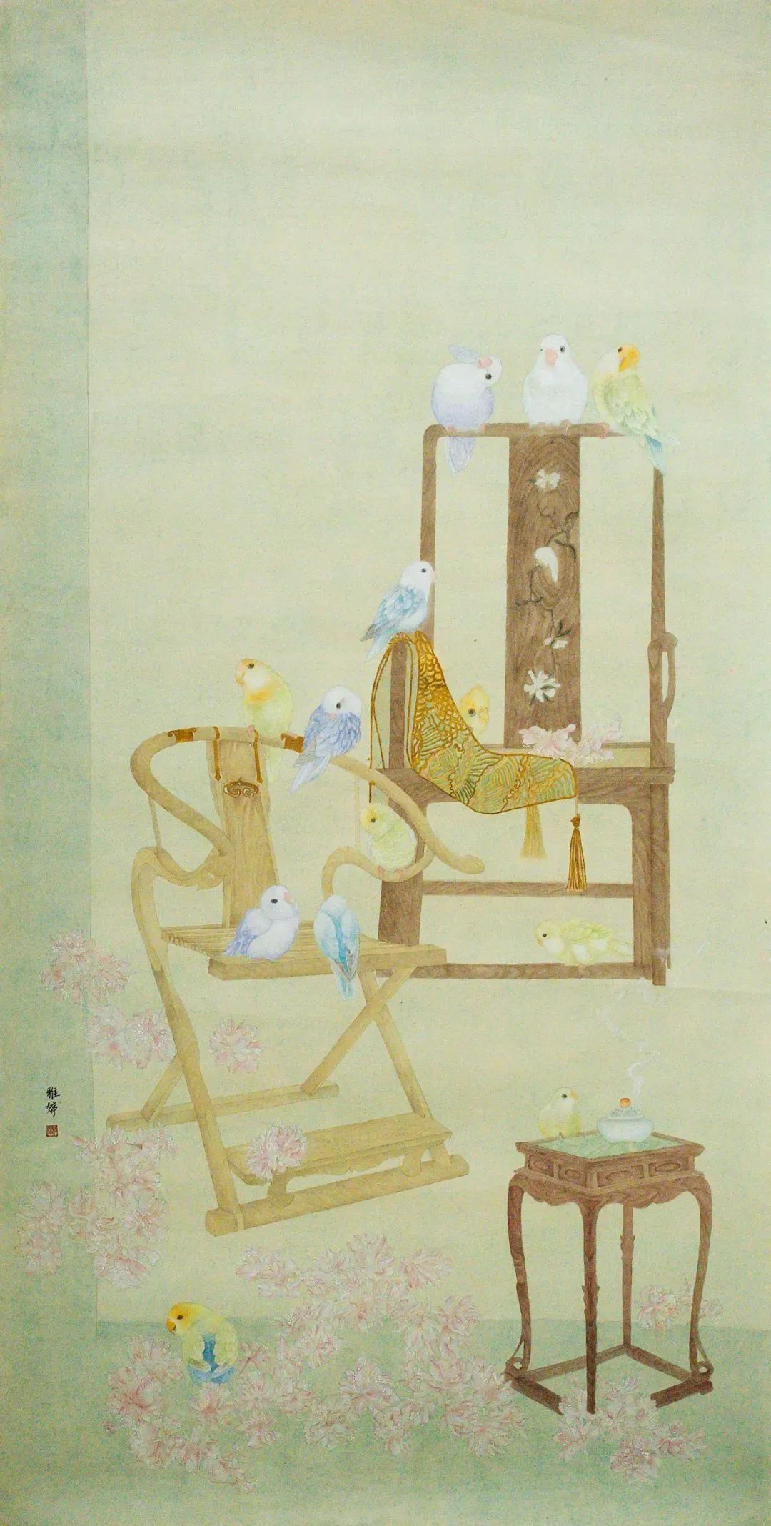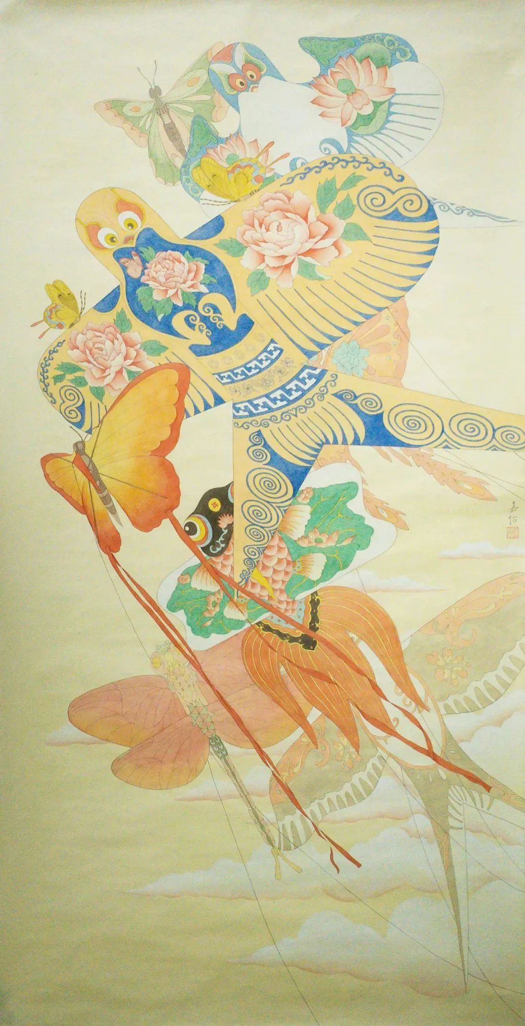郭嘉怡 《忙趁东风放纸鸢》 国画