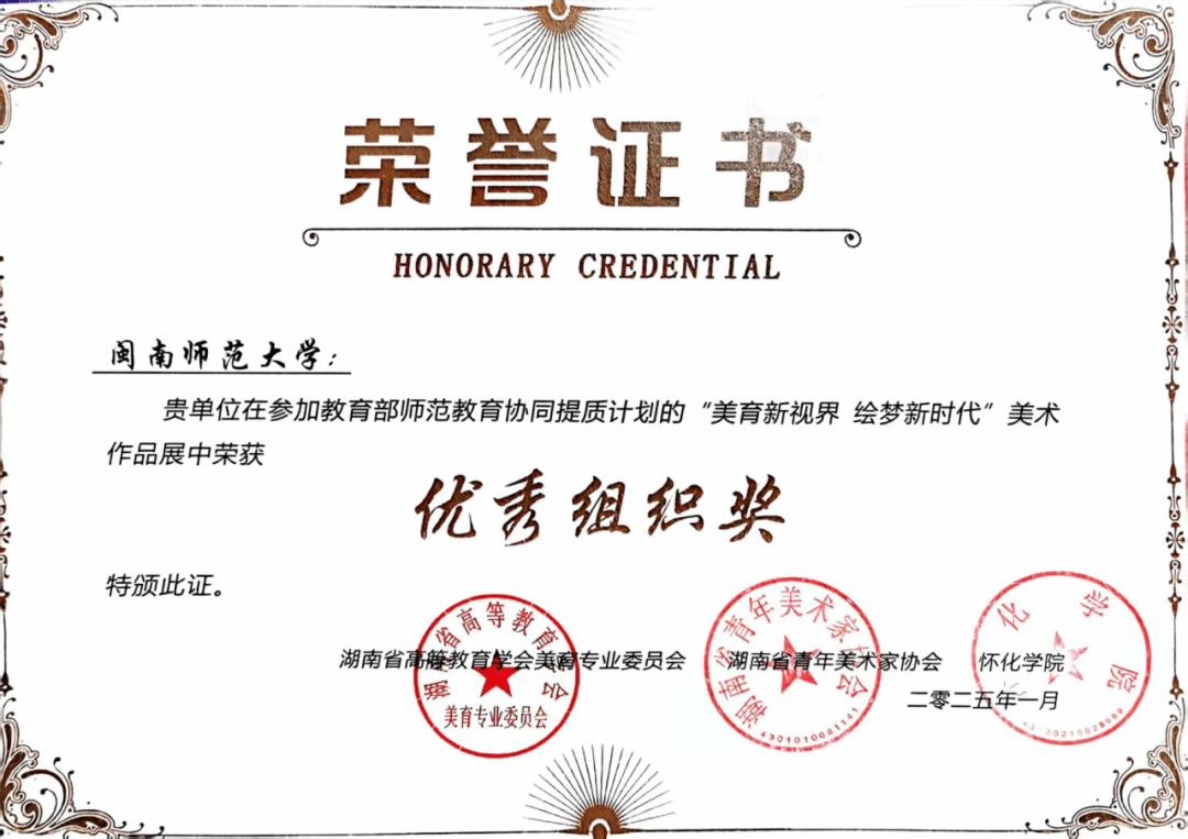 喜报|金年会jinnianhuicom参加师范教育协同提质计划湖南师范大学组团“美育新视界 绘梦新时代”美术作品展并获优秀组织奖