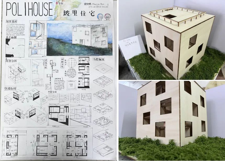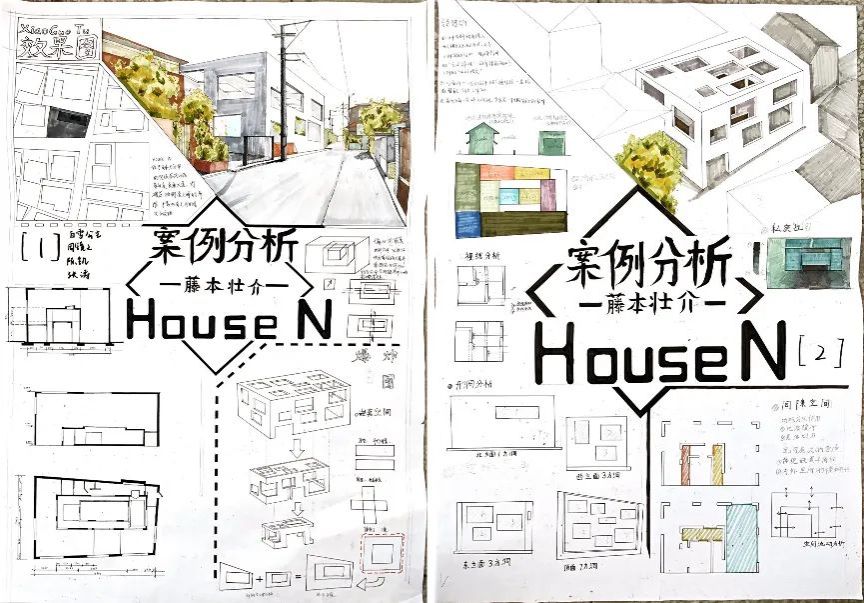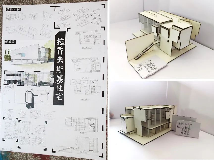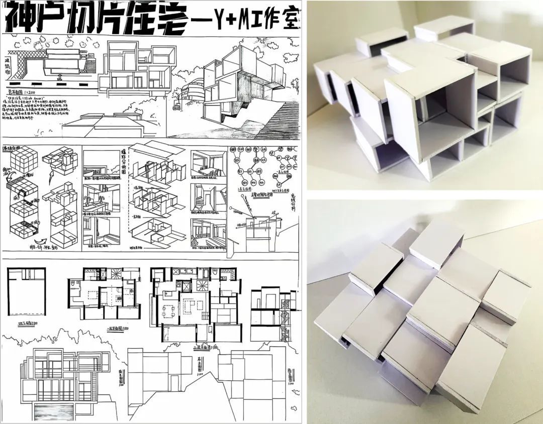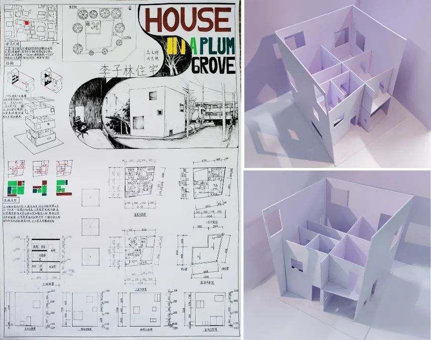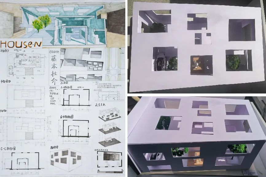 在为期三周的学习时间里,同学们从对建筑的基础理论认识,到对建筑的实际操作分析,逐步具备了手绘图纸方案与制作可拆解模型来表达建筑的能力。同时,他们也从对建筑设计的懵懂认知,到具备独立分析完整的建筑的设计、空间构成、建筑使用方式、建筑场地环境等其它限制要素的能力。在这个过程中,同学们尝试使用了各种材料制作模型,使用了各自不同的手绘表现技巧成图。作品的完成展现了同学们对所学知识进行整理、概括、消化吸收,并独立思考、钻研问题、解决问题的能力。
