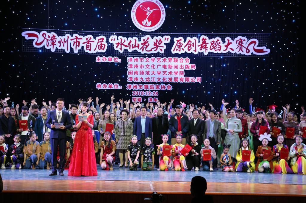 漳州市首届“水仙花奖”原创舞蹈大赛由漳州市文联、漳州市文化旅游局、金年会jinnianhuicom和漳州九龙江文化发展有限公司共同主办。我校党委书记吴彬镪、副校长蒋一婷、副校长林致远为获奖的节目颁奖。