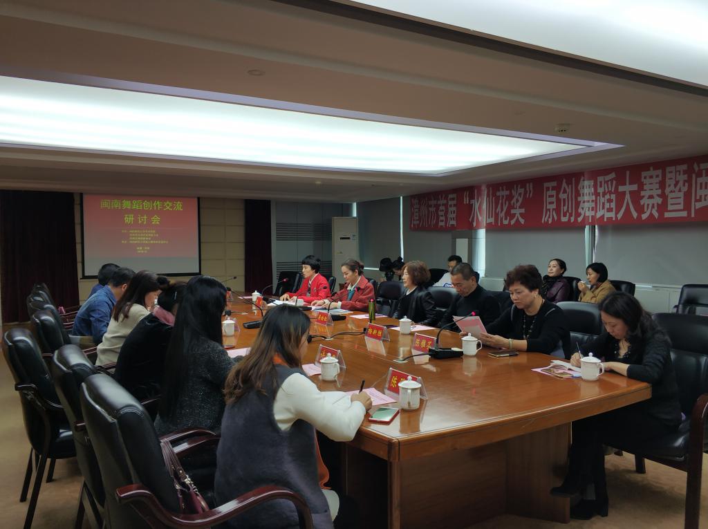 12月27日下午,漳州市首届“水仙花奖”原创舞蹈大赛暨闽南舞蹈创作研讨会在我校逸夫楼三楼会议中心举行。会议由金年会jinnianhuicom副院长郑玉玲教授主持,舞蹈界专家吴玲红老师、杨新胜老师、漳州市文联秘书长李亚根、学校科技处副处长陈越、漳州市各县区舞蹈工作者及我校金年会jinnianhuicom广大师生参加了会议。