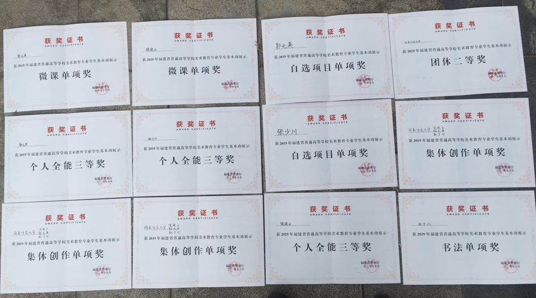 本次基本功展示活动是福建省美术教育类专业的最高赛事,来自全省各普通高等学校的选手参加本次展示活动。展示活动分为本科组和专科组,展示项目由微课展示、美术教学能力自选项目、集体创作等三个部分组成,内容包括微课、书法、手工和集体创作等。展示项目设有团体奖、个人全能奖和微课单项奖、自选项目单项奖、书法单项奖、手工单项奖、集体创作单项奖等奖项。经过三天的激烈角逐,我校代表队取得优异成绩,斩获团体二等奖,八个单项奖和三个个人全能三等奖。