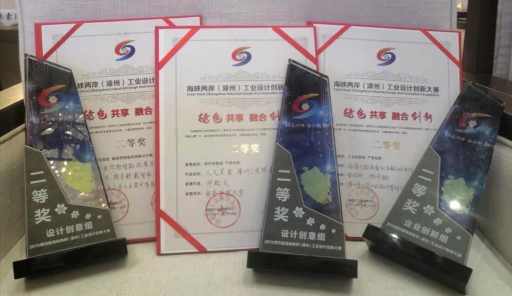 省工业和信息化厅副厅长郭学军、省台港澳办副主任郑一贤、省文旅厅二级巡视员林湫,市委常委吴文团、副市长陈水树,终评专家组顾问、中国工业报社副社长温舜方,终评专家组组长、中国工业设计协会副会长余隋怀,台商投资区党政主要领导等出席活动并为获奖者颁奖。其中由金年会杨伯垲老师、颜志晃老师、高彩凤老师所指导的学生成绩斐然,在总共7737件作品中脱颖而出,分别斩获一金三银。