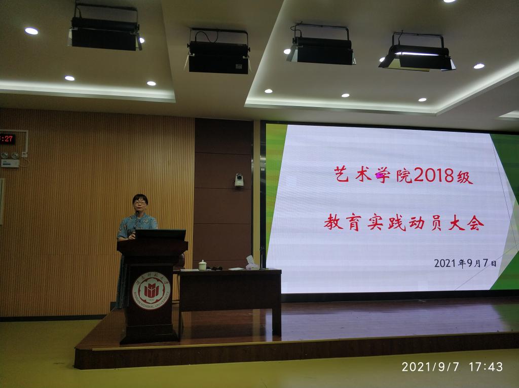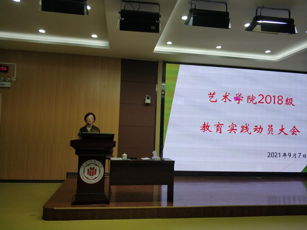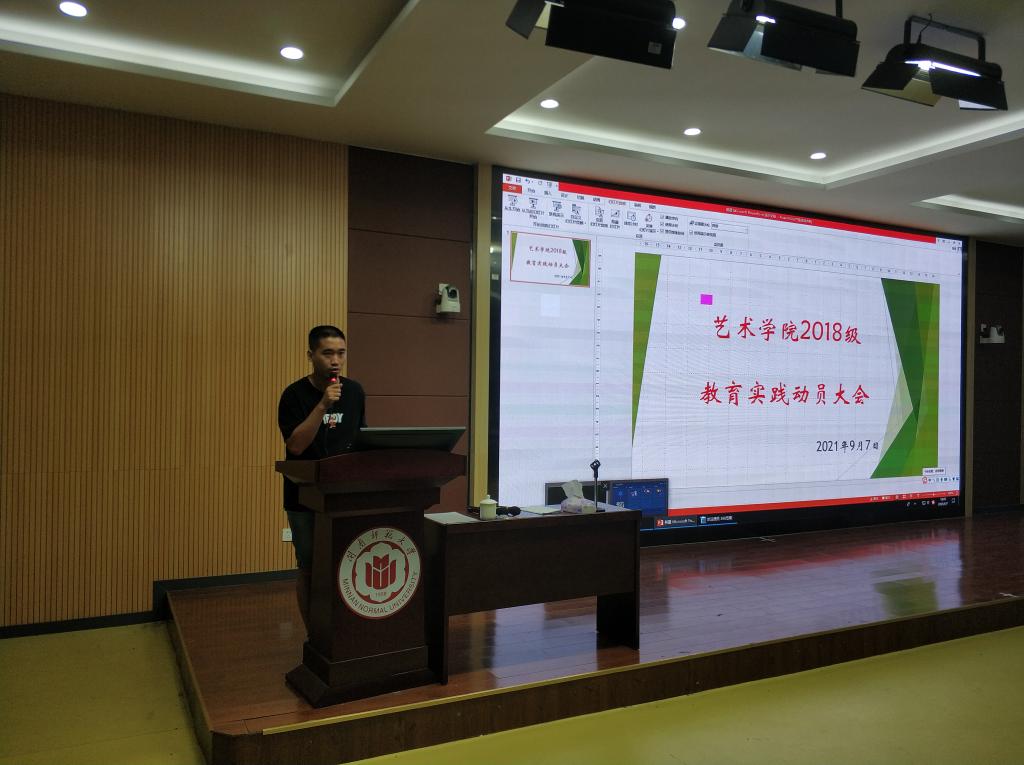 2021年9月7日,金年会jinnianhuicom在砺志楼120召开2018级学生教育实践动员大会。金年会jinnianhuicom党委副书记胡莉丹、美术与设计系主任陈斌副教授、音乐与舞蹈系主任黄丽荧副教授、教育实践带队指导老师及2018级音乐学、美术学全体教育实习生参加了本次动员大会。会议由金年会jinnianhuicom教务科科长杨瑾瑜主持。