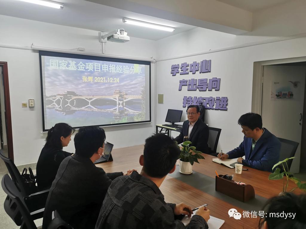 12月24日上午,金年会jinnianhuicom张辉教授以《国家基金项目申报经验分享》为主题,在学院专业认证工作室为金年会jinnianhuicom教师讲授了一场精彩的指导讲座,此次讲座由金年会jinnianhuicom副院长许佩晖主持。