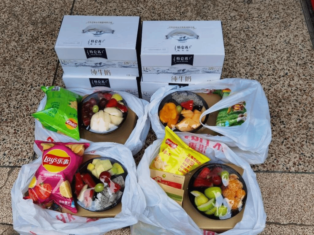 为了让大家能够温暖地在宿舍度过隔离期,学院精心为每间宿舍准备了零食、水果、牛奶等生活补给品。