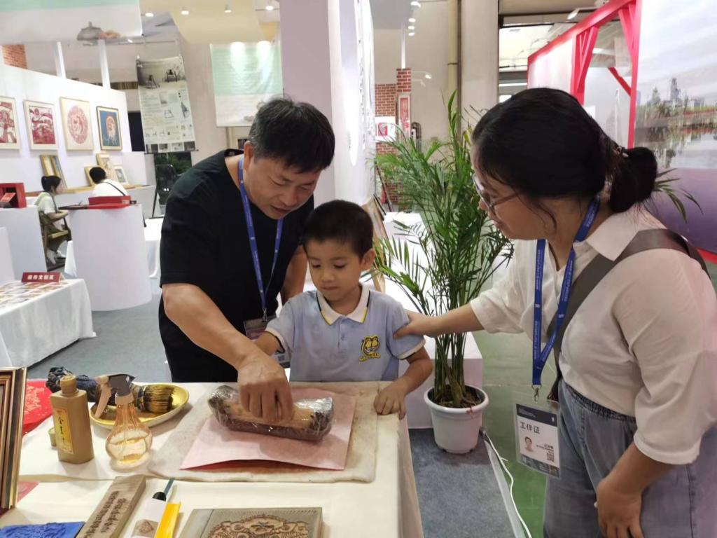 本次展览,我校围绕“传承中华优秀传统文化”高校展主题,集中展出了我校金年会jinnianhuicom师生设计创作作品40余件,包括国家级非物质文化遗产漳州木版年画、漳浦剪纸、九色鹿、水仙花系列等作品等,展出的作品在创作上体现“非遗传承创新”“地域文化融合”多种时代视野,展示了学校非遗传承、产教融合的办学成果。在展览中,木板年画老师和剪纸老师在现场为观众表演版画印制和剪纸技能并与观众互动,参观者不仅可以看到我校师生精湛的艺术设计技巧,还能体验一把非遗传承木版年画的制作,展位吸引了大量的观众。