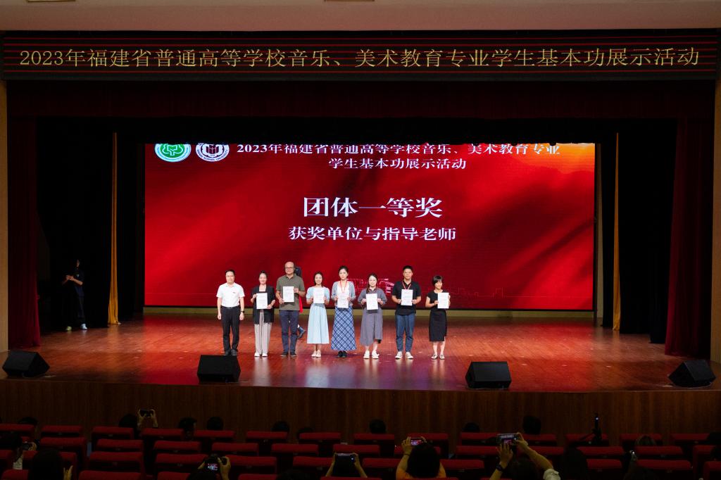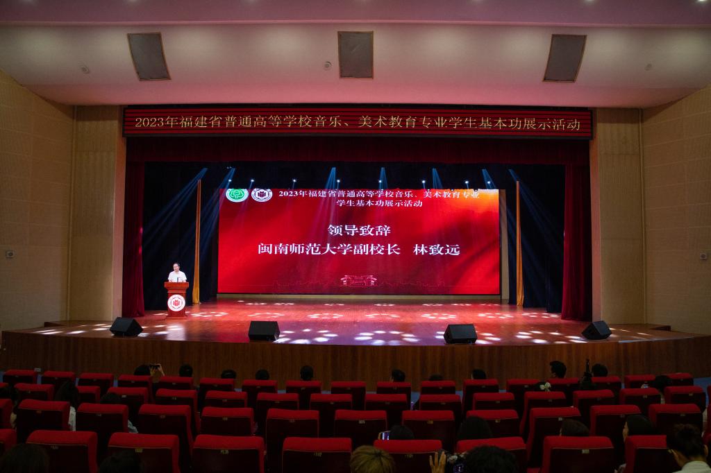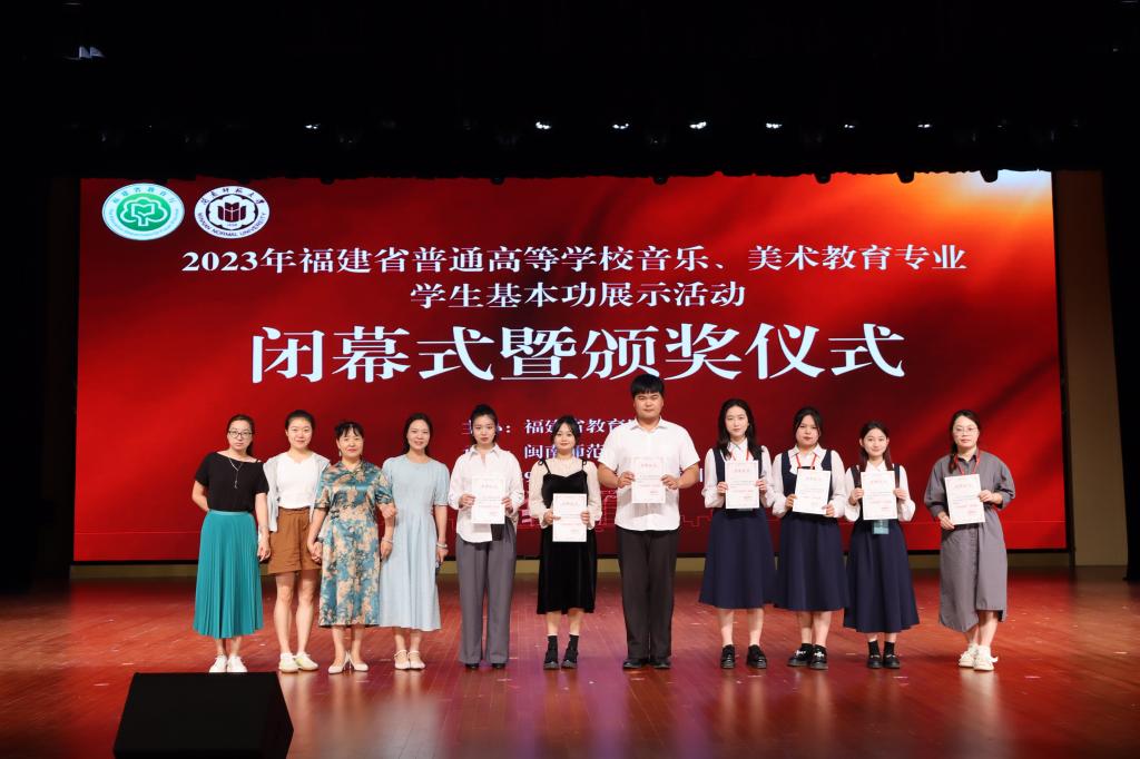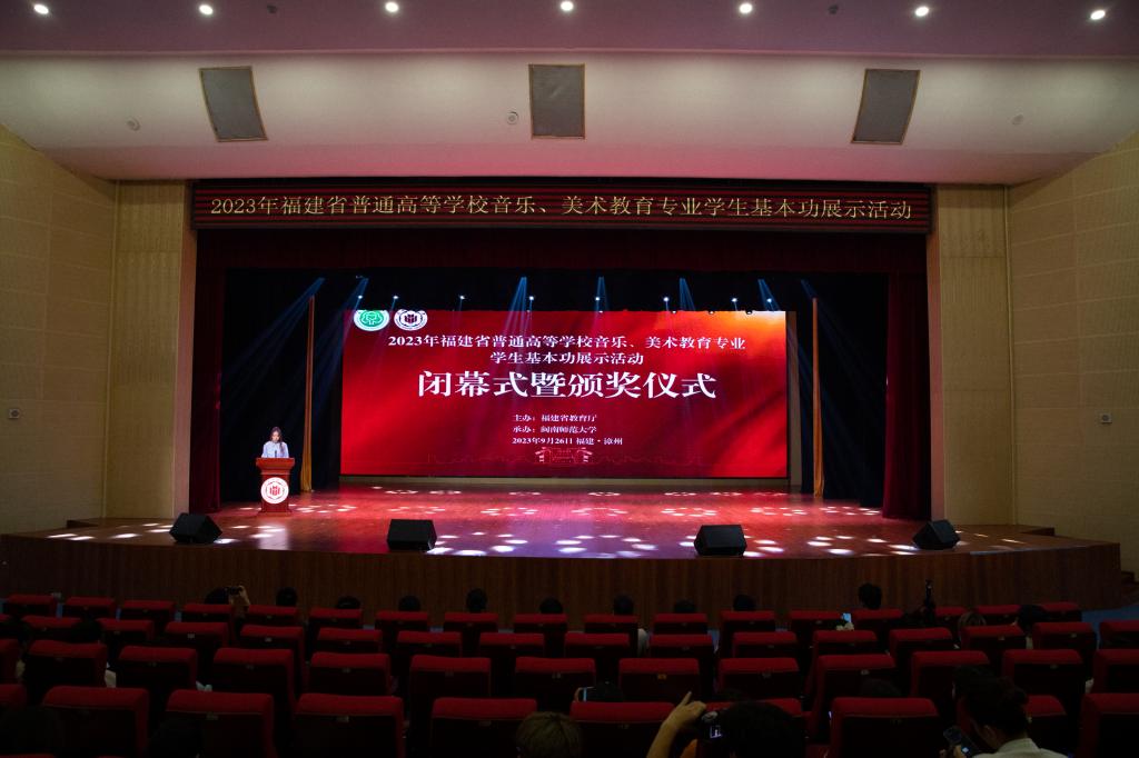 2023年9月26日,由福建省教育厅主办、金年会诚信信誉至上承办的为期三天的2023年全省普通高等学校音乐、美术教育专业学生基本功展示活动闭幕式暨颁奖仪式在闽南文化艺术中心多功能厅召开。校党委常委、副校长林致远,教务处处长汪庆祥,金年会jinnianhuicom党政班子成员,部分师生代表,评委专家及来自全省16所院校的领队、选手、观摩人员出席闭幕式。