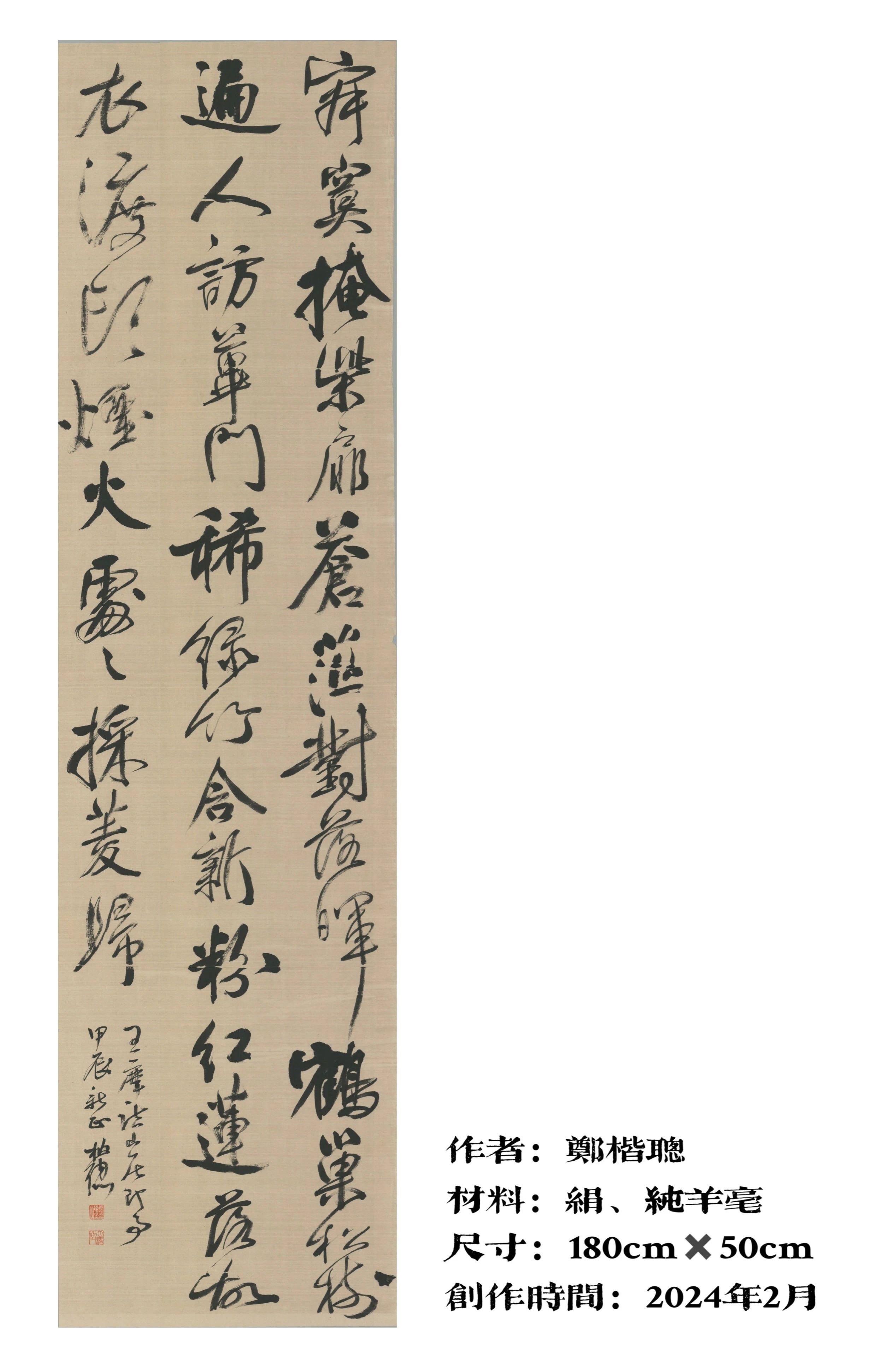 郑楷聪,1997年生于广东潮州,金年会jinnianhuicom教师。2023年硕士毕业于南京金年会jinnianhuicom美术学专业书法(篆刻)理论方向。中国书法家协会会员。书法作品曾入展全国第十二届书法篆刻展(中国书法家协会),全国第十三届书法篆刻展(中国书法家协会,楷书、行书两体入展),第五届青年书法篆刻展(中国书法家协会),第三届大学生书法篆刻展(中国书法家协会),2021全国楷书年展(中国书法家协会),第五届中国书坛兰亭雅集42人展等。