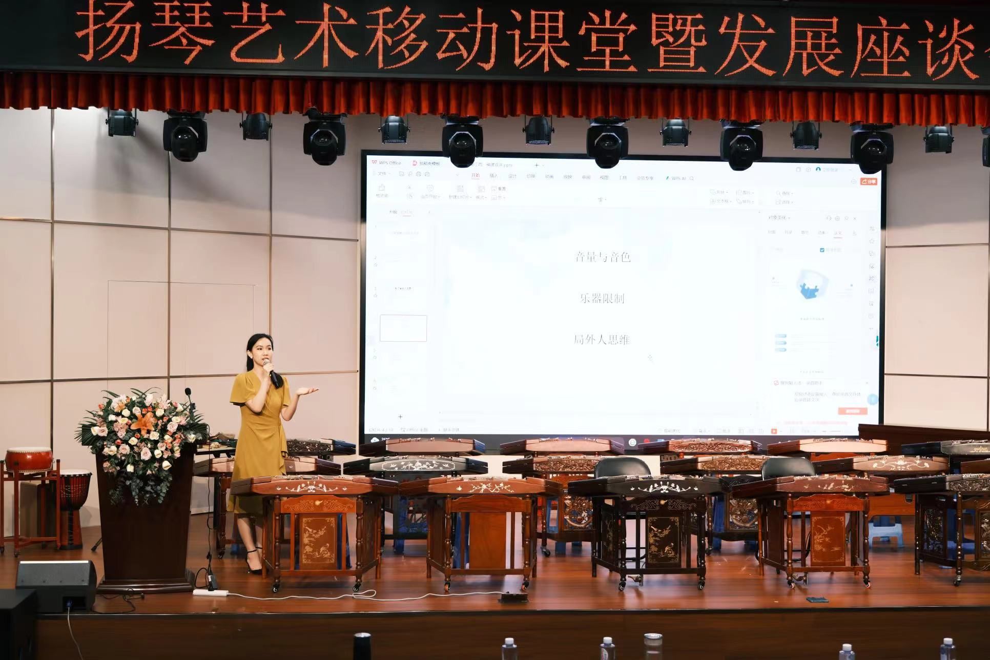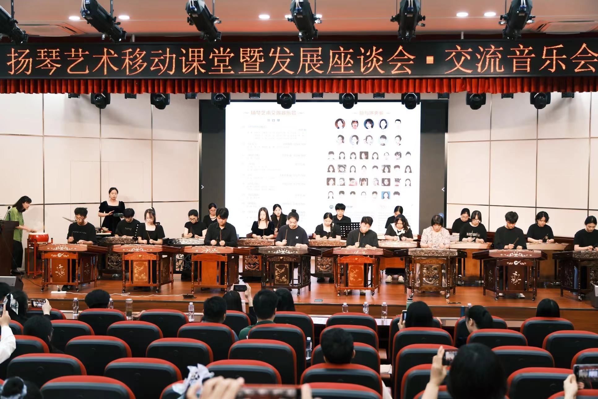 6月16日,金年会jinnianhuicom于金年会jinnianhuicom多功能演播厅举办扬琴艺术移动课堂暨发展座谈会及交流音乐会。中国乐器协会扬琴艺术专业委员会会长、中国扬琴艺术移动课堂首倡者、中央音乐学院教授刘月宁,国防大学军事文化学院硕士生导师刘春阳,著名扬琴演奏家、扬琴基础教育专家沈剑等多位扬琴界的优秀老师、金年会jinnianhuicom党委书记汤跃滨、主持工作副院长许佩晖等老师与众多学生共同出席了此次活动。