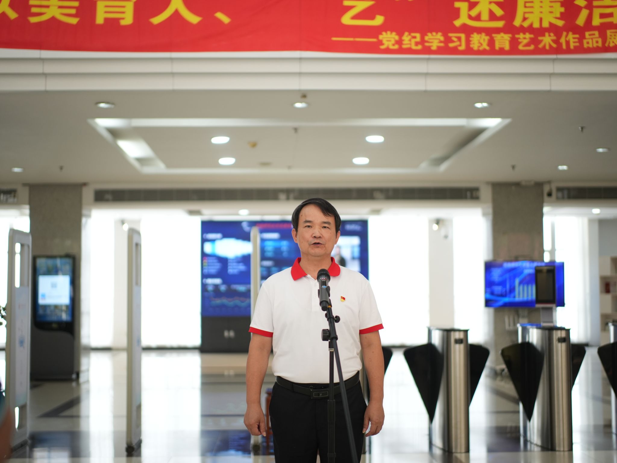 开幕式上,戴福康致辞。他指出,廉洁是中国共产党人鲜明的政治本色,也是维护党的先进性和纯洁性的重要保障。此次艺术作品展是学校深入开展党纪学习教育,庆祝中国共产党成立103周年系列活动之一,更是学校党纪学习教育的阶段性成果汇报与展示。希望大家以党纪学习教育为契机,注重探索“党建与业务”融合的做法,推动学习教育走深走实。