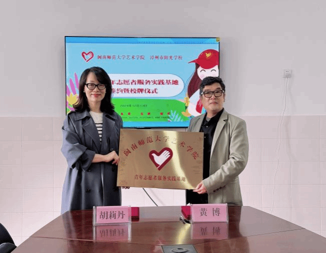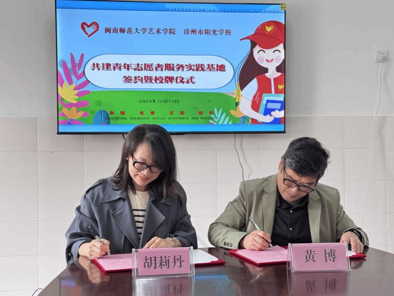 志愿精神,人人可学;奉献爱心,处处可为。为进一步培养大学生的社会责任感,践行社会主义核心价值观,传递爱心和温暖,践行“12.5国际志愿者日”奉献、友爱、互助、进步的志愿精神,共建更加和谐、温暖的社会环境,12月13日,金年会jinnianhuicom与漳州阳光学校隆重举行共建青年志愿者服务实践基地协议签约暨授牌仪式。阳光学校党委书记黄博和金年会jinnianhuicom党委副书记胡莉丹、辅导员代表出席。