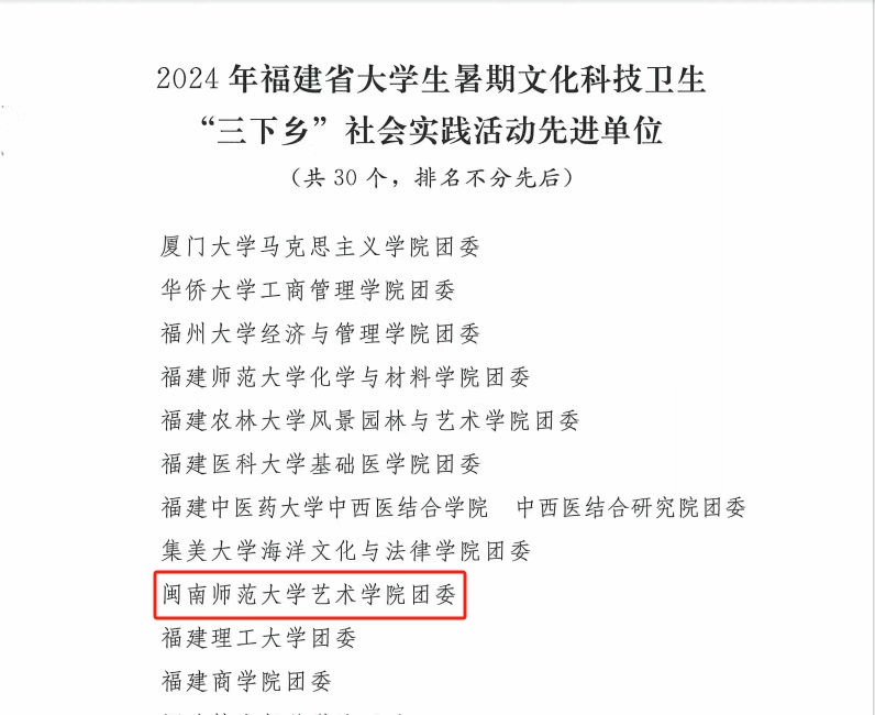 金年会jinnianhuicom团委荣获2024年福建省大学生暑期文化科技卫生“三下乡”社会实践活动先进单位