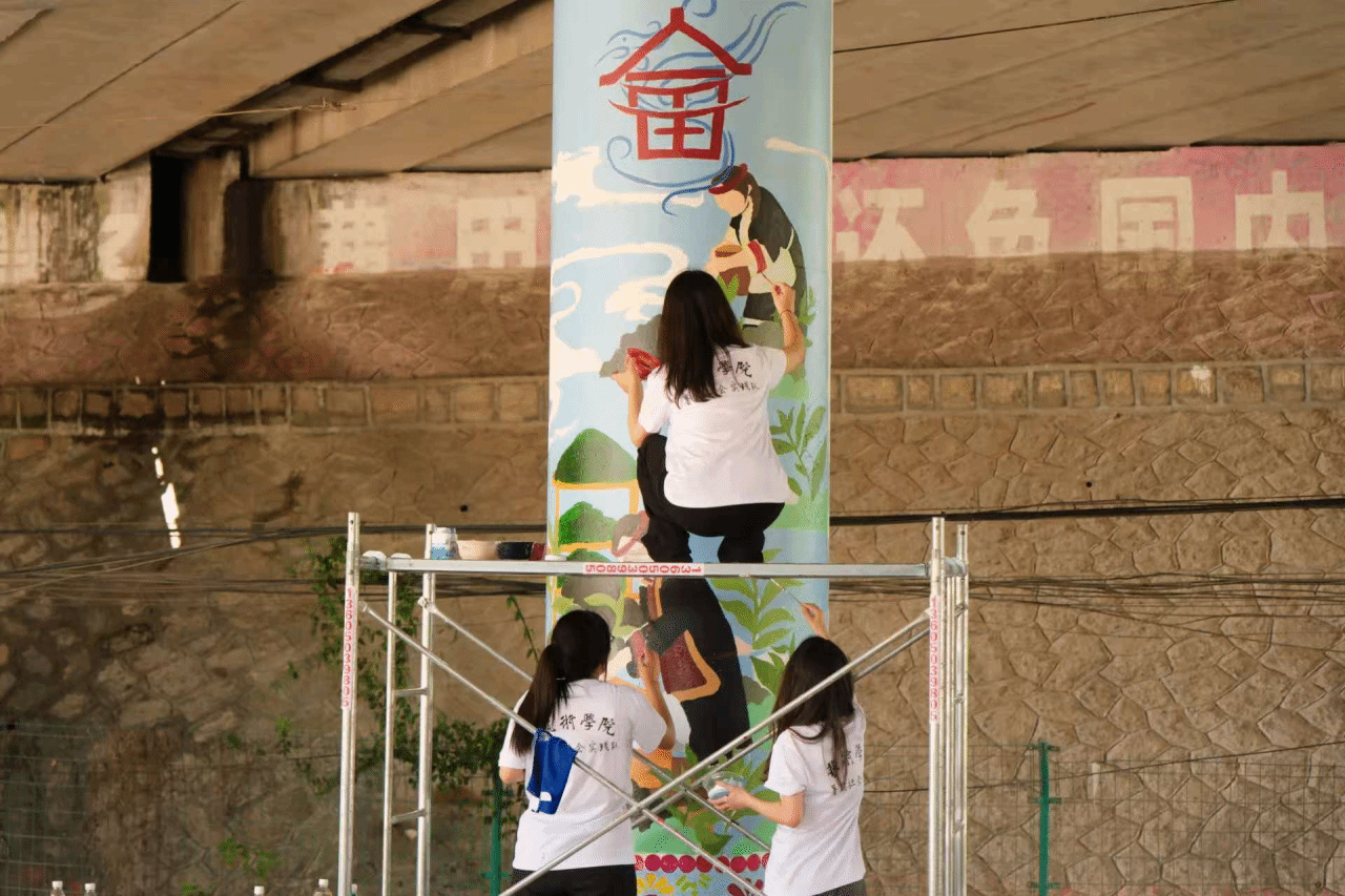 在“艺术+乡村振兴”实践中,学子们以墙绘艺术为乡村换上新颜。他们精心设计,将当地特色文化与自然风光巧妙融合,一幅幅色彩斑斓、富有创意的墙绘跃然墙上,不仅改善了乡村环境,更提升了乡村的文化气质与吸引力,为乡村产业发展注入新活力,让乡村在艺术的装扮下焕发出勃勃生机。