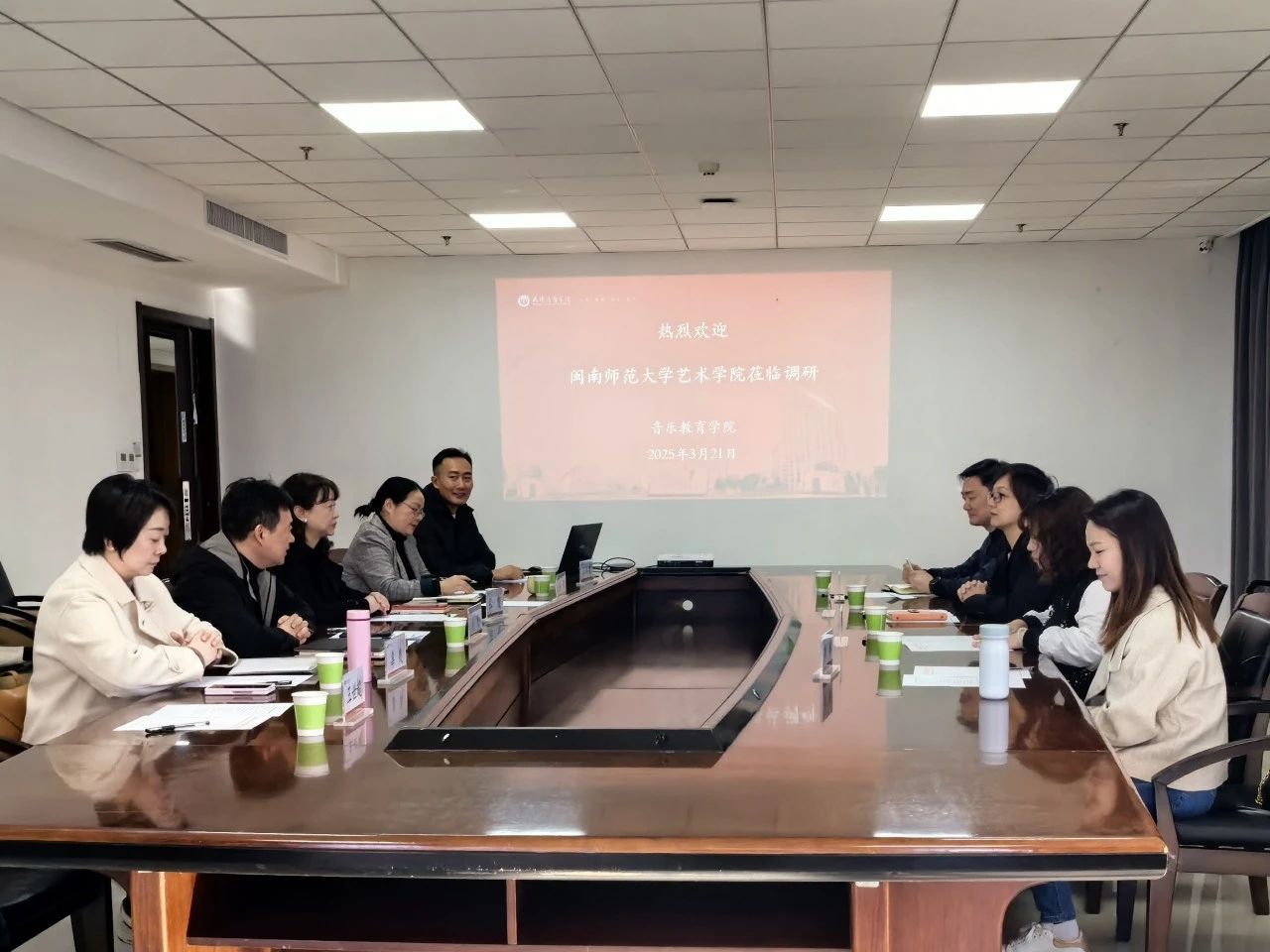3月21日,金年会jinnianhuicom分管教学副院长黄嘉璇一行前往武汉音乐学院音乐教育学院进行调研交流,金年会jinnianhuicom音乐与舞蹈系主任李云洁、钢琴及声乐教研室相关负责老师共同参加了交流活动。