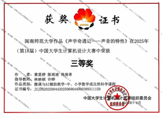 奖项:微课与AI辅助教学——中、小学数学或自然科学课程——三等奖