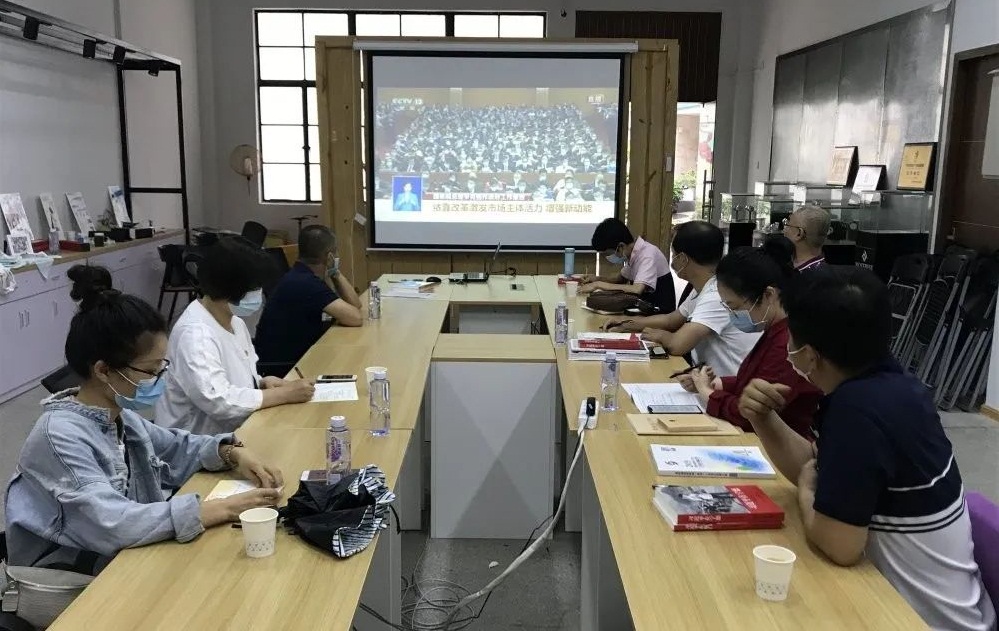 5月22日,学院教工第一党支部全体党员在闽南文化创新设计研究院一同收看2020年全国“两会”直播,并传达学习会议精神。学院党委书记汤跃滨、副书记方芳出席学习会,会议由支部书记陈斌主持。