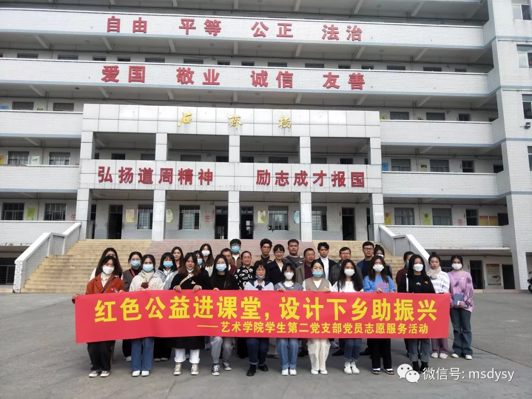本次党日活动,师生党员积极发挥音乐、美术专业优势,走进道周中学教室开展以“红色公益进课堂,设计下乡助振兴”为主题的党日活动,开展认识乐器、学唱红歌与制作五星红旗等一系列“艺术下乡”活动。