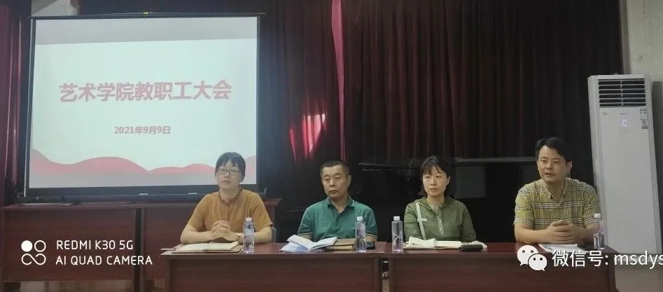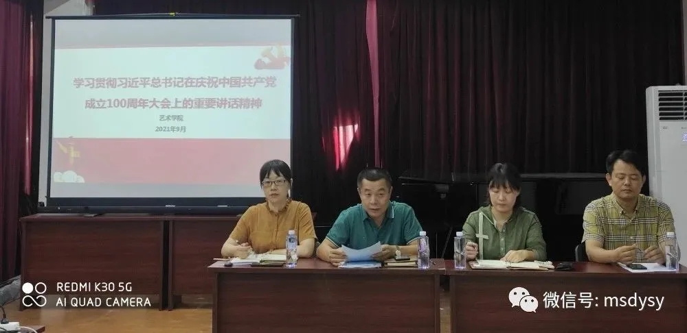 2021年9月9日,金年会jinnianhuicom在习奏习唱室召开新学期教职工大会,组织学习传达习近平总书记在庆祝中国共产党成立100周年大会上的重要讲话精神,学院党政班子出席会议,全体教职工参加会议。会议由学院副院长许佩晖主持。
