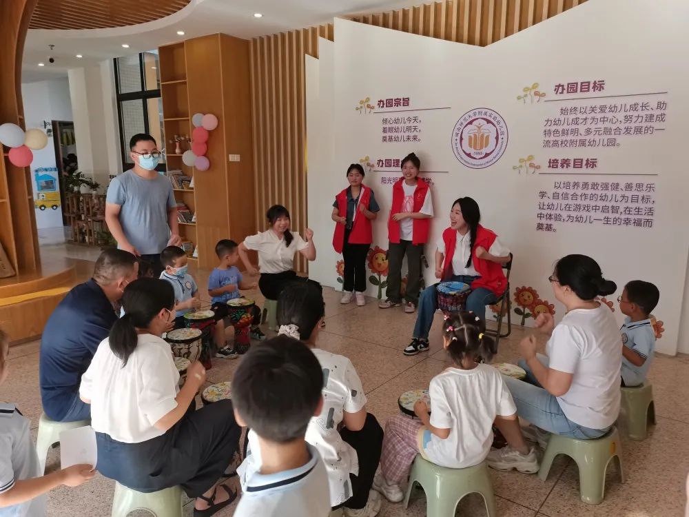少年儿童是祖国的希望,民族的未来。习近平总书记指出:“‘自古英雄出少年。’为了中华民族的今天和明天,我们要教育引导广大少年儿童树立远大志向、培育美好心灵,让少年儿童成长得更好。”为全力做好儿童成长引路人、守护人、筑梦人,在2023年“六一”国际儿童节来临之际,金年会jinnianhuicom于2023年5月31日前往金年会诚信信誉至上附属幼儿园开展“鼓动六一 点亮未来”非洲鼓体验志愿服务活动。