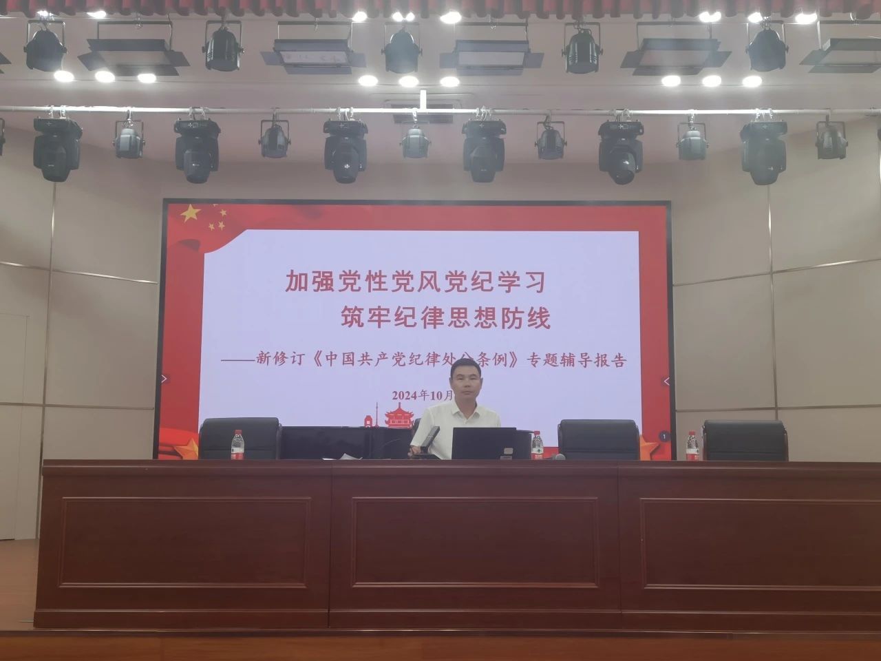 第二讲是由学院党委书记潘艺阳以《加强党性党风党纪学习 筑牢纪律思想防线》为题的专题党课。课上,他围绕《中国共产党纪律处分条例》(以下简称为《条例》)》修订的基本情况,指出党纪是管党治党的根本依据,也是全体党员必须遵守的行为规范。新修订的《条例》从政治纪律、组织纪律、廉洁纪律、群众纪律、工作纪律和生活纪律六大方面对每一名共产党员的方方面面行为进行了严格的规范,各级党组织和广大党员要把学习贯彻新修订《条例》作为重要政治任务,严格执行和遵守党的纪律,自觉将纪律要求内化于心,外化于行,做学习贯彻《条例》的实践者、推动者和监督者。