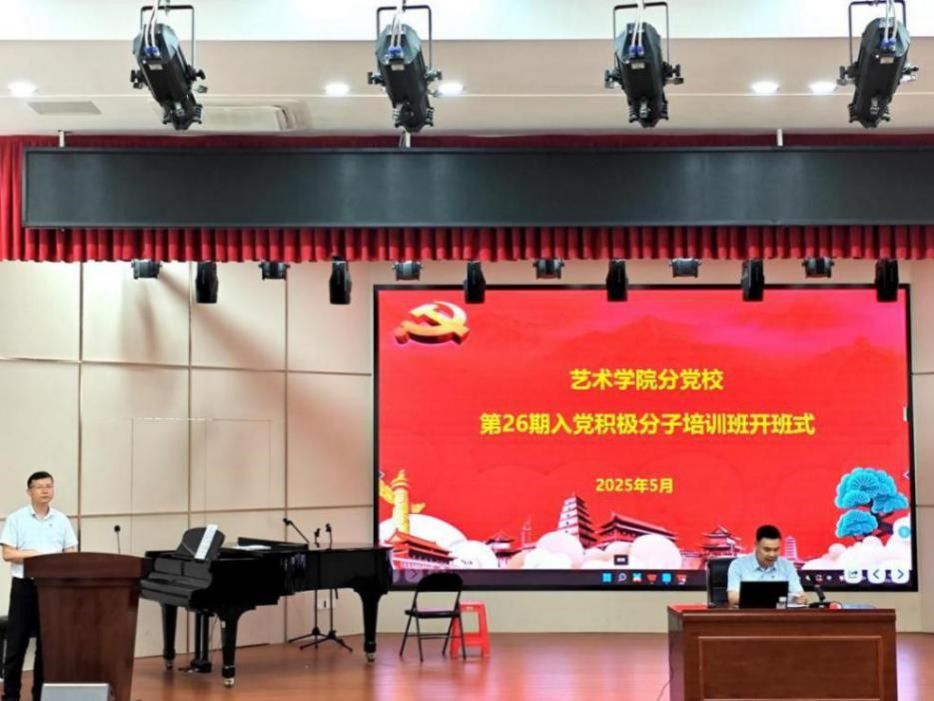 5月8日,入党积极分子培训班开班仪式在金年会jinnianhuicom东区报告厅举行,由学院党委组织员陈木坤老师主持,学院党委书记潘艺阳老师发表动员讲话。潘艺阳指出,党校在党员教育培养工作中具有重要作用,要求全体学员以习近平新时代中国特色社会主义思想为指导,将理论知识与艺术创作相结合,深化对党的认识。