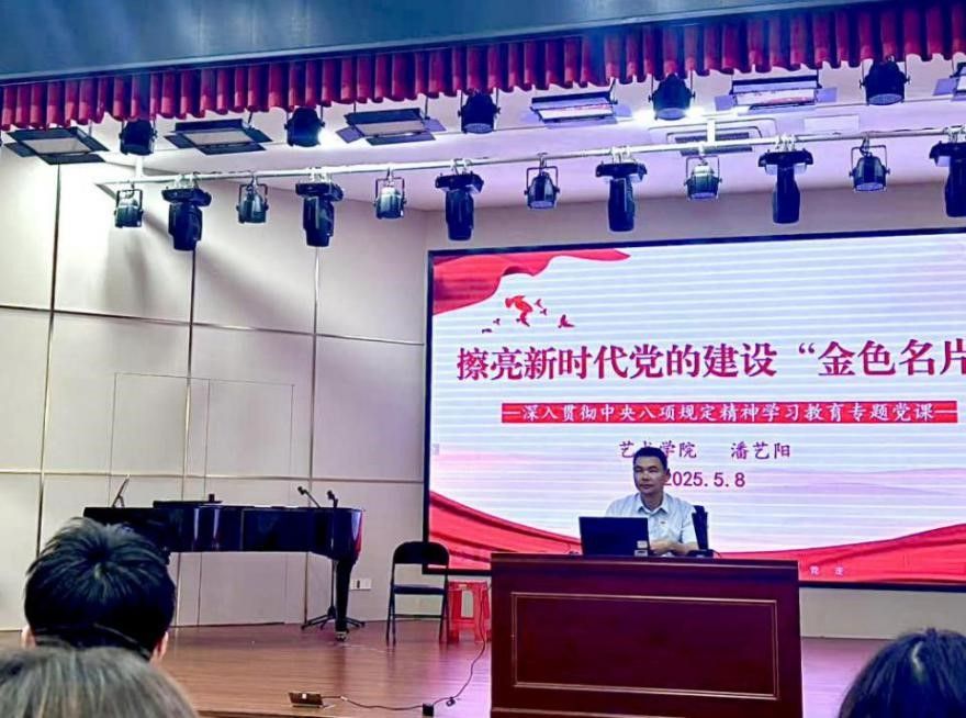 随后,潘艺阳以《擦亮新时代党的建设“金色名片”》为题讲授党课,系统解读中央八项规定出台的背景与实施细则,阐释其核心精神,从党、国家和社会三个层面,剖析中央八项规定的重要性和必要性,帮助学员们以实际行动践行党的要求,自觉接受群众监督,为擦亮党的建设这张“金色名片”贡献青春力量。