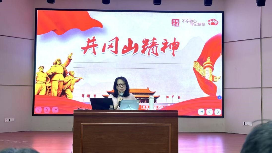 5月11日,学院党委副书记胡莉丹老师以《弘扬井冈山精神,汲取奋进力量》为题进行授课,从井冈山精神内涵与起源切入,深入剖析其时代价值及对历史创作的启示,强调学员应坚定理想信念,树立远大目标,传承红色基因,以实际行动争做新时代艺术青年。在她的领读下,全体学员齐声诵读《西江月・井冈山》,进一步深化了学员对革命精神的理解与感悟。